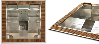 Die Chromstahl-Whirlpools haben eine Überlaufrinne und sind aus rostfreiem Edelstahl gefertigt